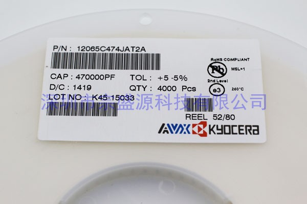 AVX陶瓷電容 1206 50V 0.47UF 12065C474JAT2A