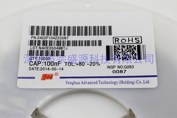風(fēng)華陶瓷電容 0402 25V 0.1UF 0402F104Z250NT