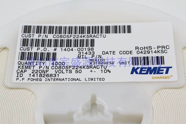KEMET陶瓷電容 0805 50V 0.22UF C0805F224K5RACTU