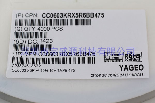 國巨陶瓷電容 0603 10V 4.7UF CC0603KRX5R6BB475